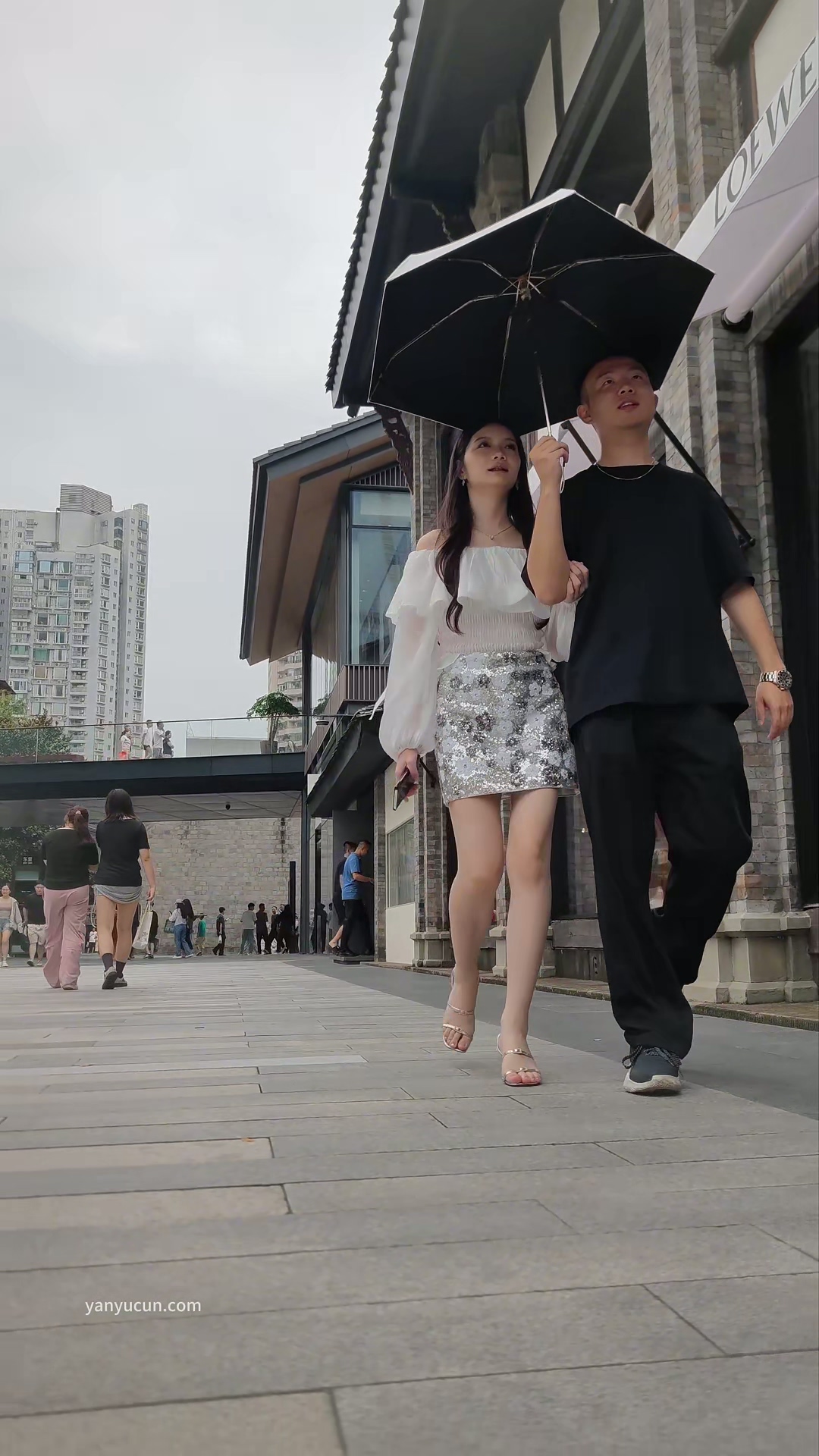 XM324银色短裙气质美女和男朋友逛街,白色内内 ...