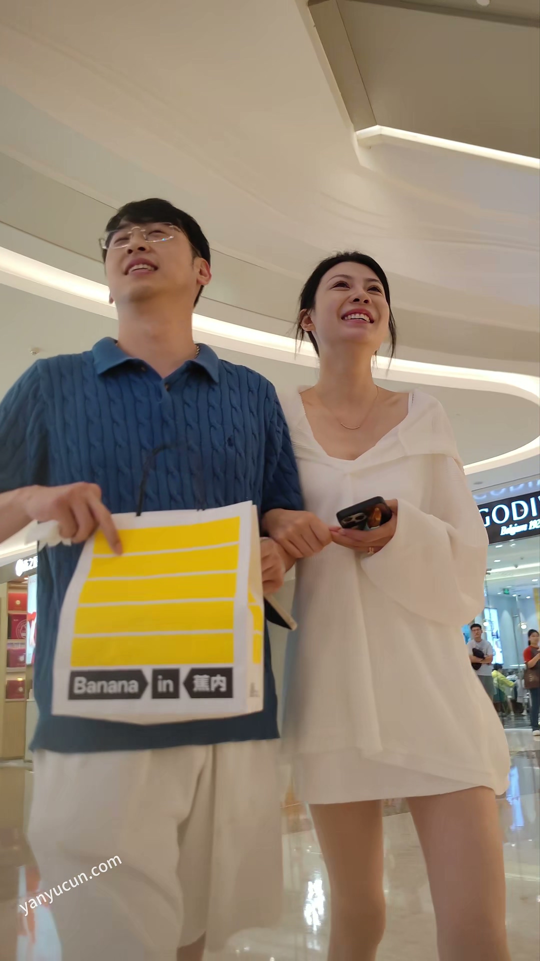 XM375白色连衣裙少妇和老公逛街,黑色窄内 375