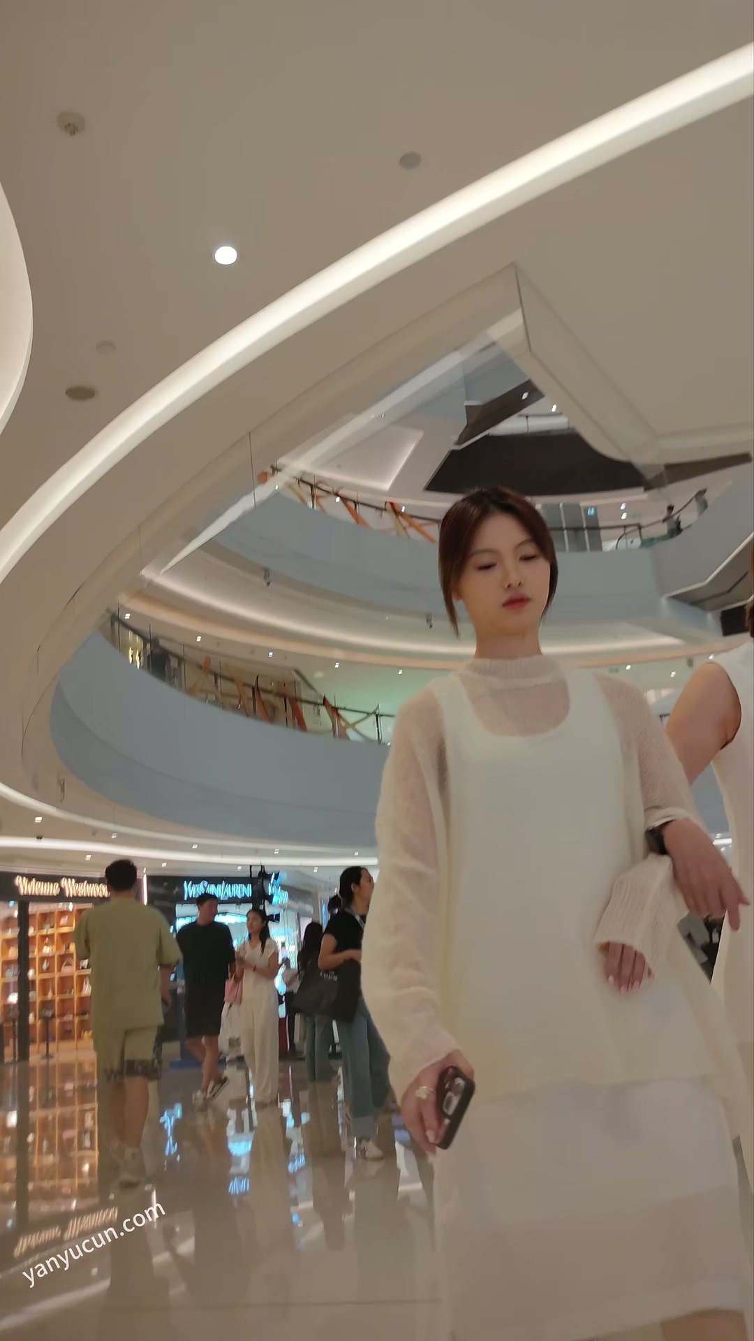 XM392白色连衣裙小姐姐和家人一起逛街吃饭,黑色窄内 ...