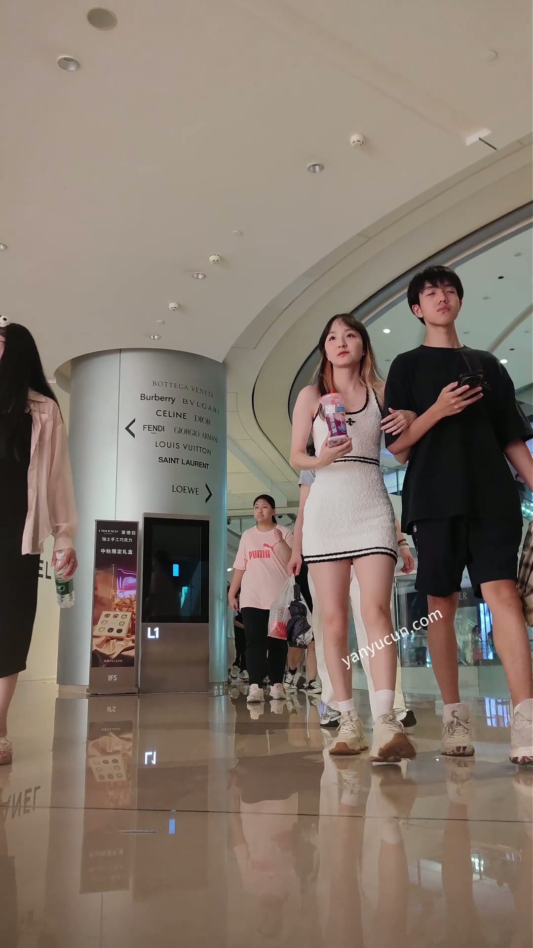 XM411白色包臀裙极品美女和男朋友逛街,黑色窄内