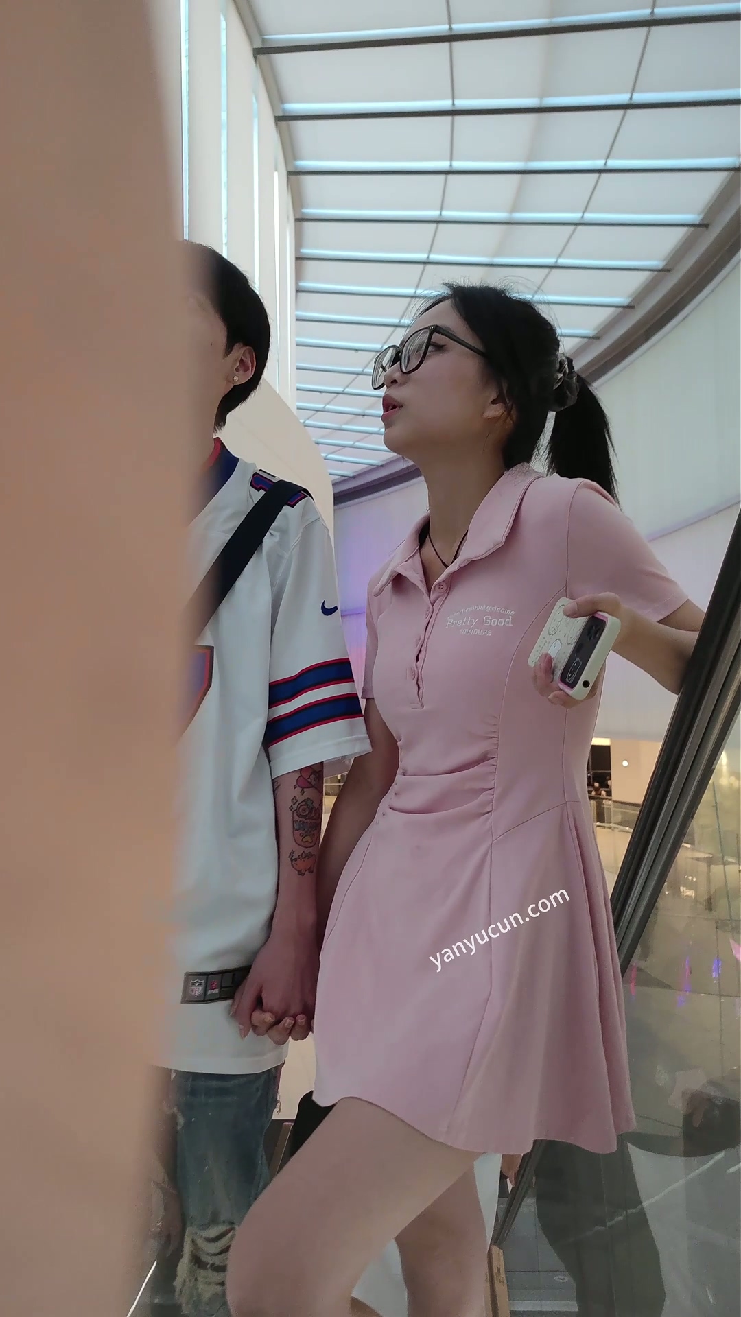 XM414粉色连衣裙带眼睛小姐姐和男朋友逛街,黑色窄内 ...