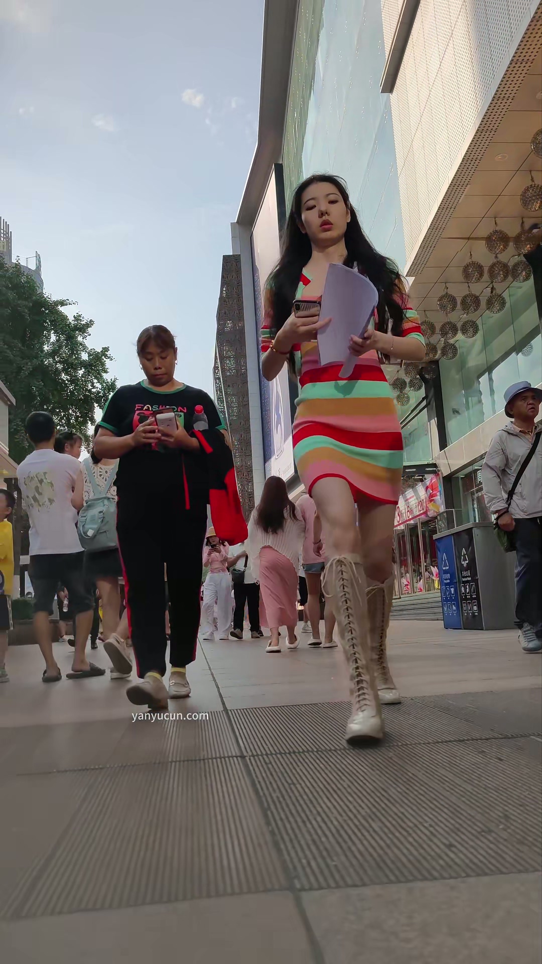 XM327身高175包臀裙长靴美女一个人出来吃饭,白色内内