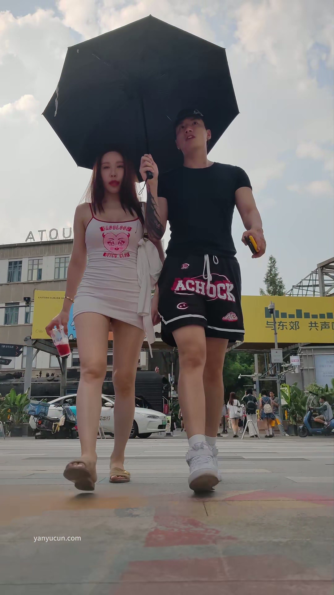 XM337白色包臀裙美女和男朋友逛街,白色丁字裤 ...