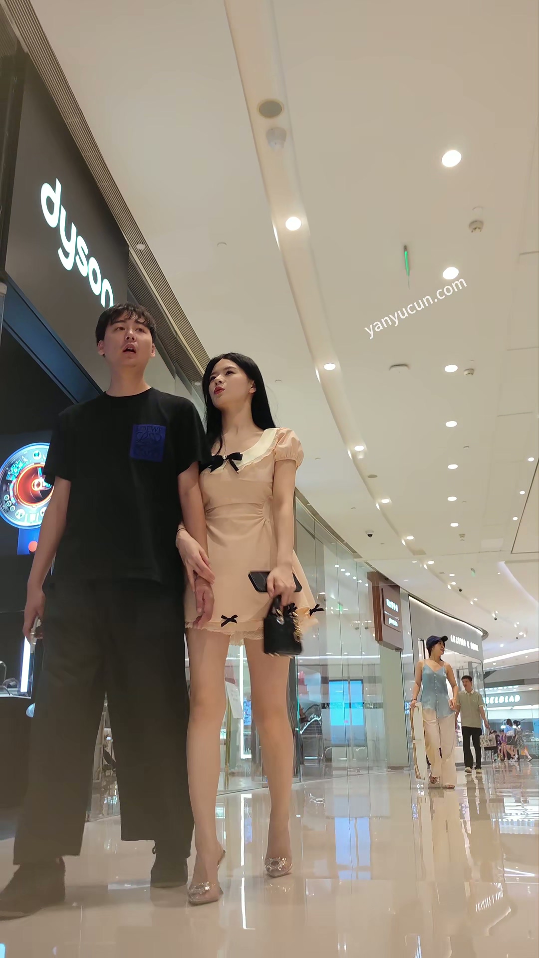 XM357粉色连衣裙极品高跟鞋美女和男朋友逛街,白色内内 357