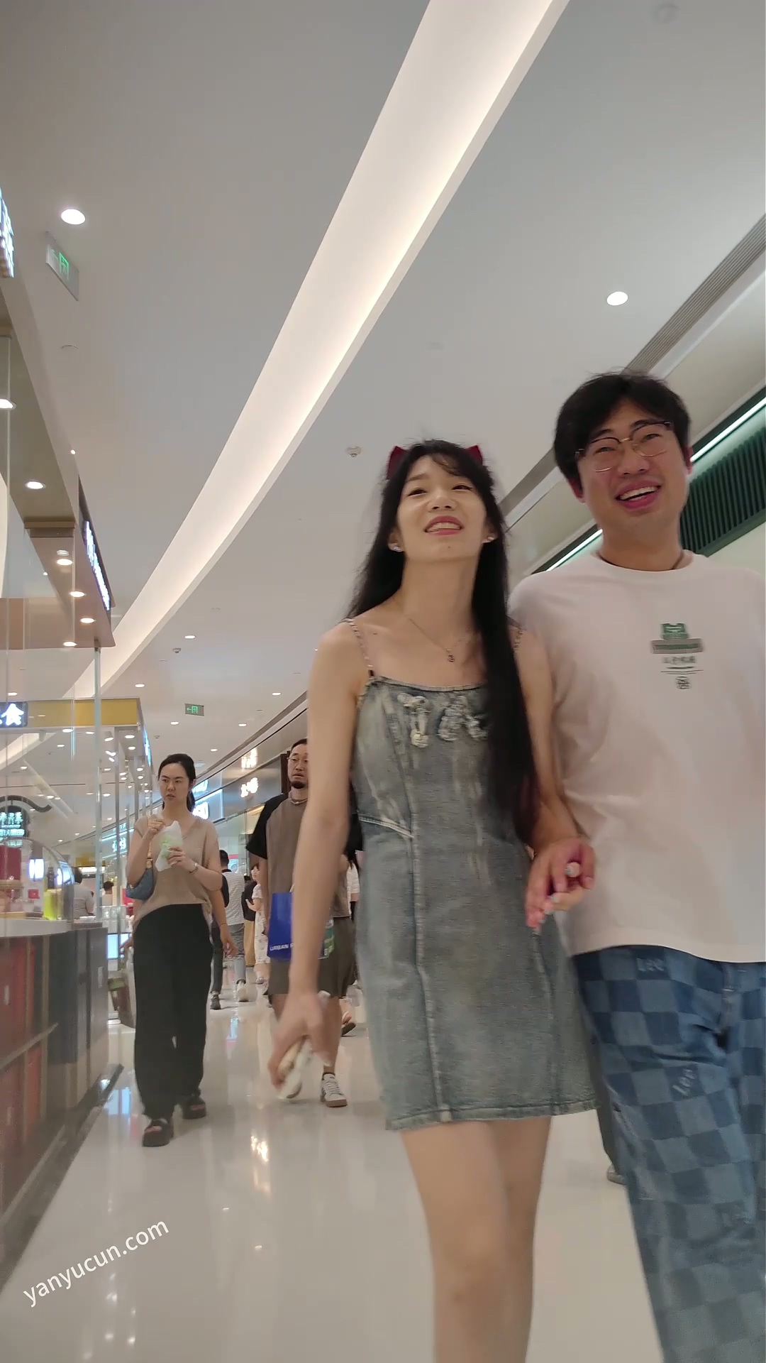 XM421蓝色牛仔连衣裙甜美小姐姐和男朋友逛街,蓝色内内 ...
