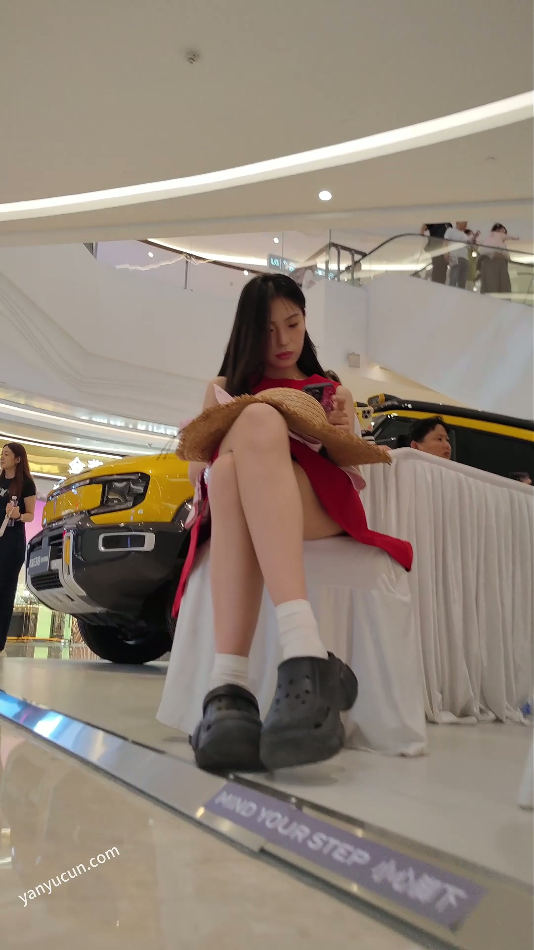 XM429红色连衣裙小姐姐一个人逛街,前后抄底白色内 ...