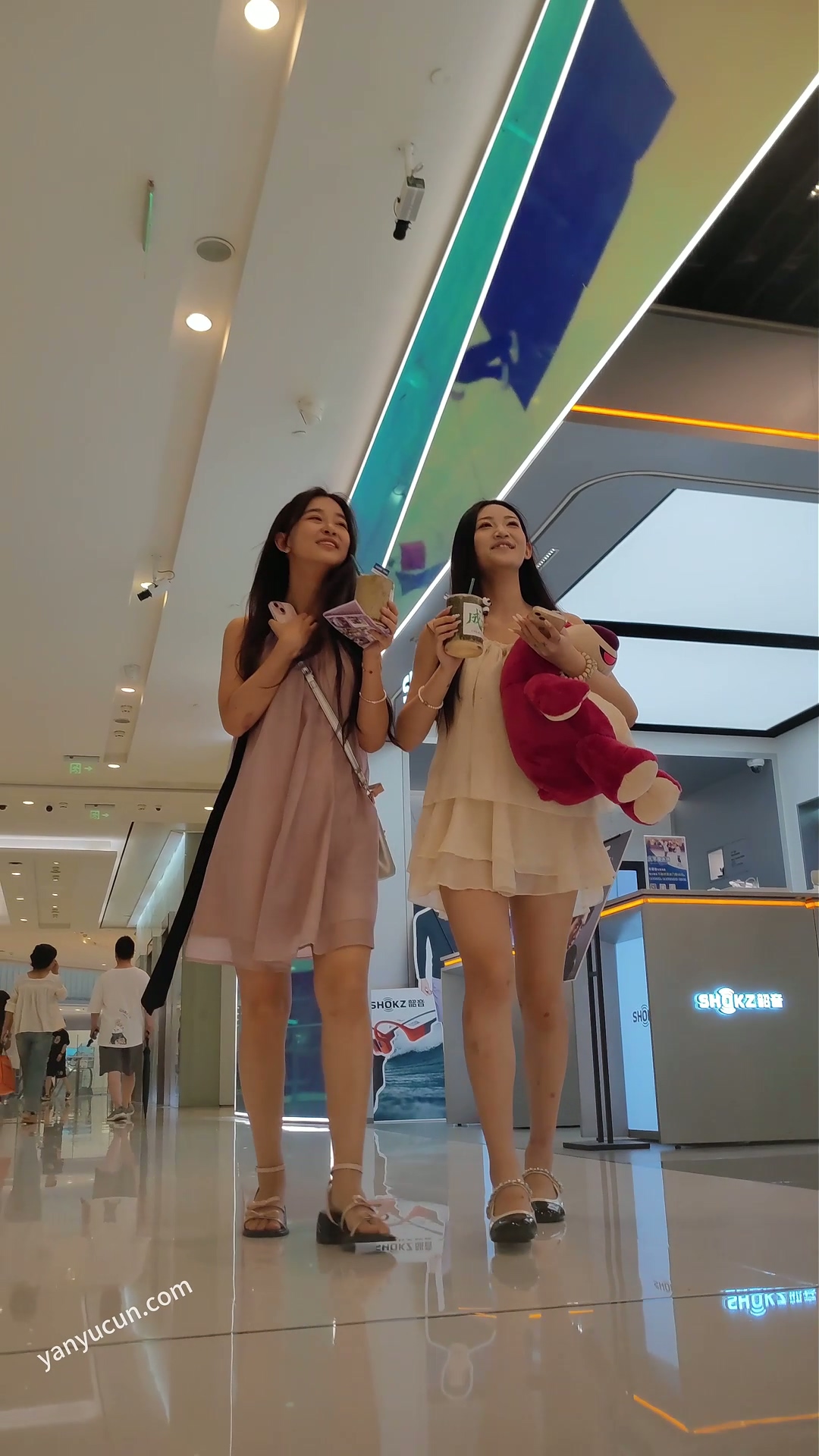XM452紫色连衣裙小姐姐和闺蜜逛街,白色内内 452