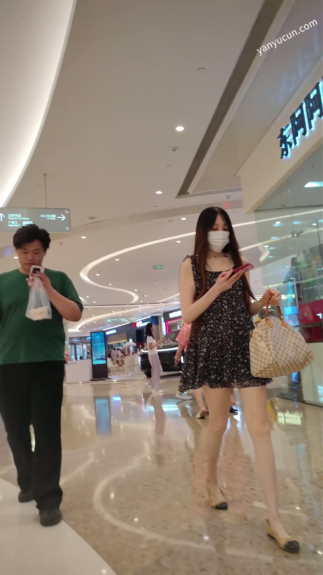 XM461黑色印花连衣裙美女一个人逛街,屁股透明开个口骚 ...